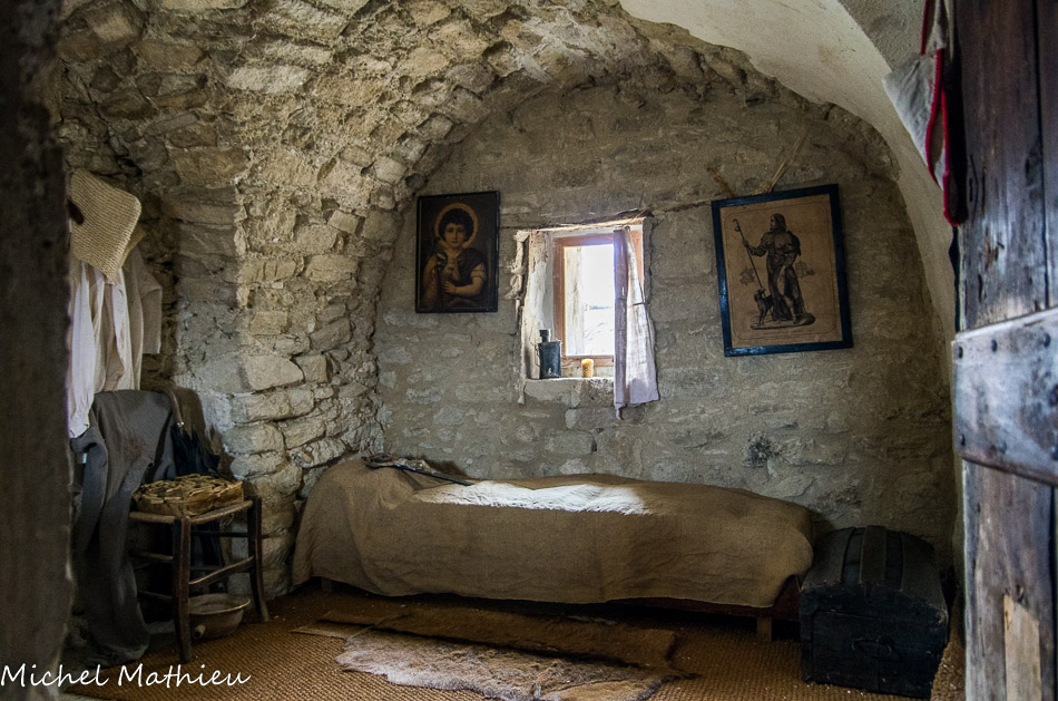 La Chapelle Saint-Jean-de-Fuzils L'ermitage. L’association a reconstitué avec beaucoup de réalisme l’environnement du dernier ermite : rideaux de coton épais, lit et table de bois, chapelet et missel, et même les ventouses pour se soigner !