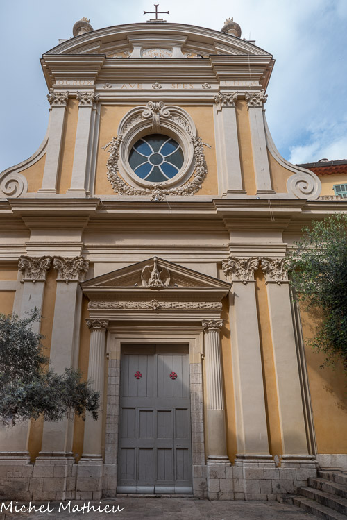 La première pierre de la nouvelle construction est posée le 15 mai 1677. Vers 1685 l'église est achevée. Entièrement restructuré au XVIIe siècle, en pleine floraison du baroque niçois, l'intérieur de la chapelle est d'un luxe et d'une richesse inouïs. La nef est rectangulaire et, séparé par un arc triomphal, un chœur en hémicycle est surmonté d'une étrange demi-coupole. a nef est ornée, latéralement, de six chapelles qui furent entretenues, comme dans toutes les autres églises du Vieux-Nice, soit par des groupes (corporations ou confréries), soit utilisées comme sépulture jusqu'à la fin du XVIIIe siècle par des particuliers, nobles en général.
