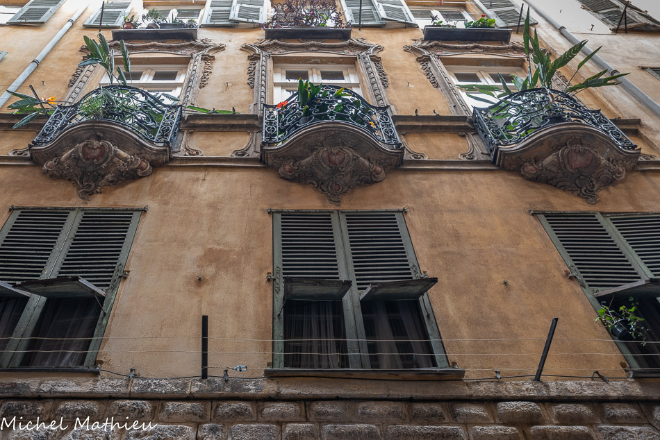 Le boulet est celui que l'on peut voir, en levant les yeux, dans la Rue Droite, à l'intersection avec la Rue de la Loge. Ces boulets à canon furent tirés par la flotte turque sur la ville de Nice lors du siège franco-turc en 1543, lors de la 9e Guerre d'Italie. C'est aussi à cette occasion que s'illustra selon la légende Catherine Ségurane, symbole de la résistance de la population, lors d'un assaut des attaquants le 15 août. Le 8 septembre, la flotte se retira à l'arrivée de renforts obtenus par Charles III.