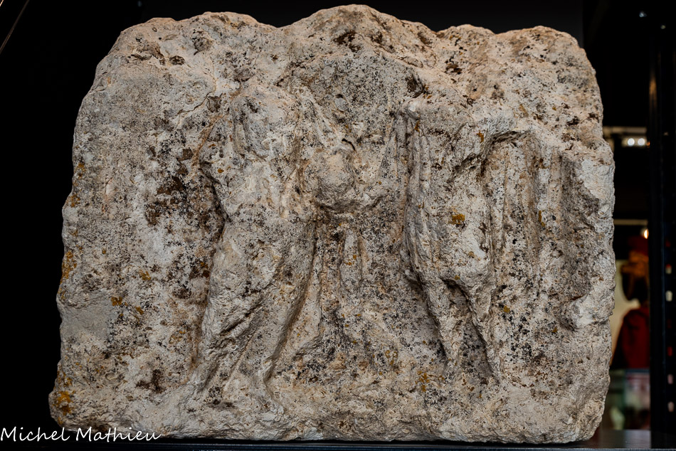 Milieu 5ème—6ème siècle après JC. Qartier Saint-Pierre, Alba-la-Romaine. Dans l'architecture ecclésiastique, le chancel (du latin cancelli, « barrière », balustrade ») est une clôture qui sépare la nef où sont réunis les fidèles, du c chœur liturgique réservé au clergé. Son origine remonte à l’Antiquité : dans les lieux publics, le chancel était une barrière qui séparait les orateurs magistrats du peuple, ayant notamment pour fonction de prévenir les débordements du public. Ce pilier est un élément de cette barrière. Dans les rainures se glissaient les plaques de ‘ensemble auquel l appartenait. Des décors géométriques sont caractéristiques de l’art wisigothique.