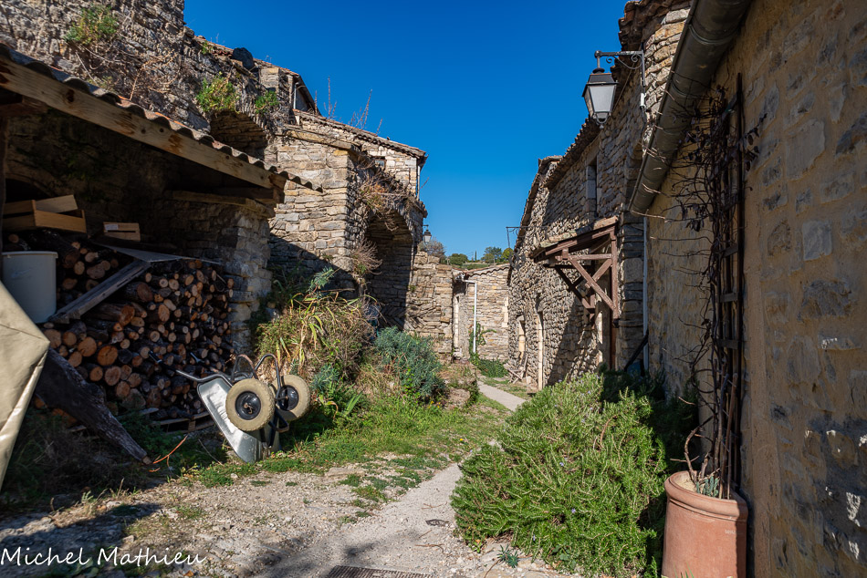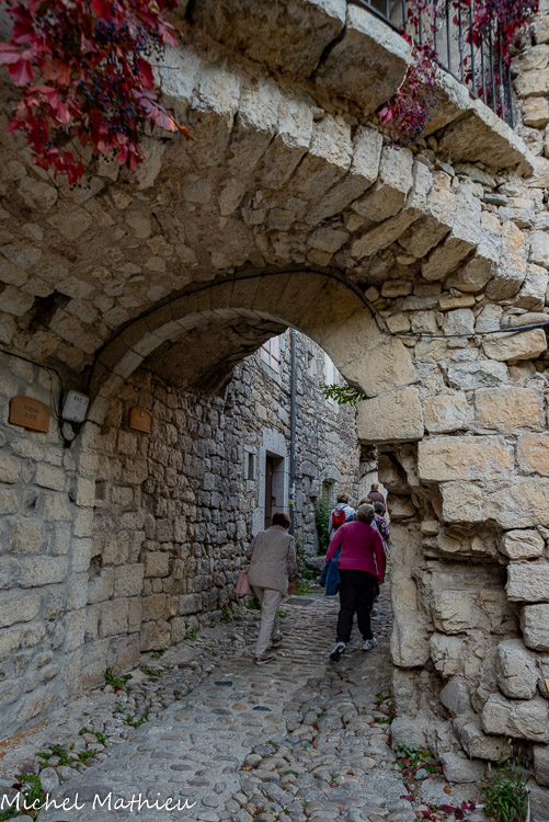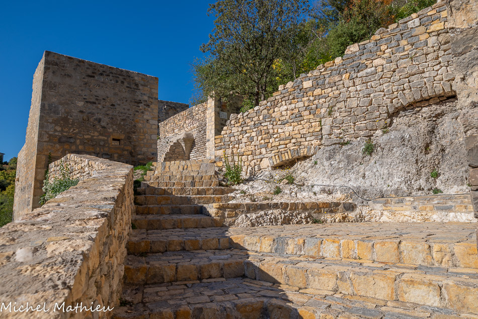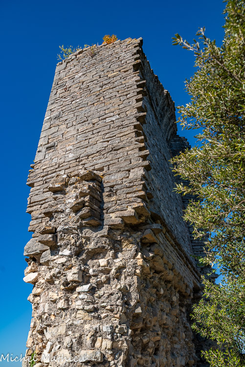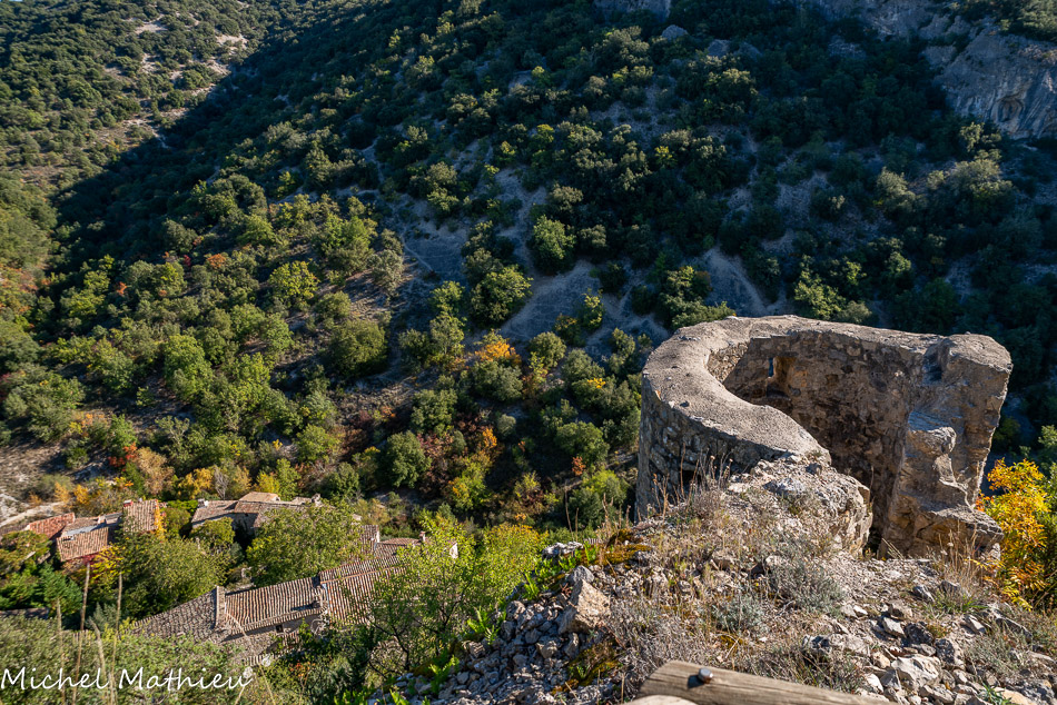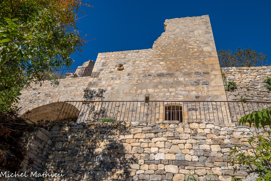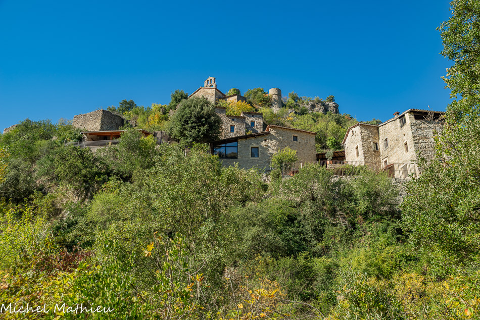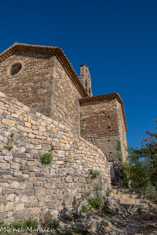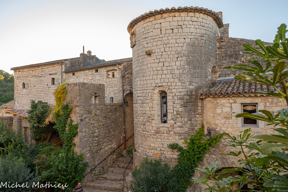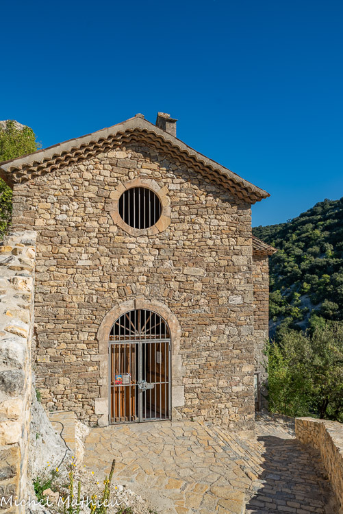 Le vieux village médiéval est accroché à sa colline couverte de garrigue, et la jolie chapelle St Barthélémy, tout comme la tour de l’ancien château, semble tenir délicatement en équilibre tout au-dessus des maisons.