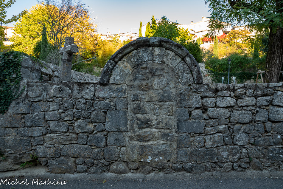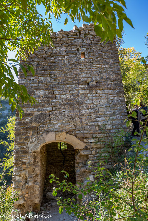 Le portail d'été. C’est l’entrée sud du village (d’où le nom de Portail d’été). On distingue encore dans la muraille le canal de fuite dans lequel on glissait une longue pièce de bois, l’épar, lorsque la porte était ouverte et qui, la nuit venue, fermait les battants.