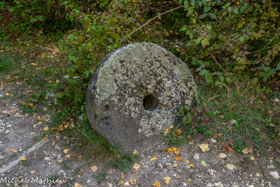 On distingue encore les marques des barres à mine utilisées pour faire sauter le rocher.