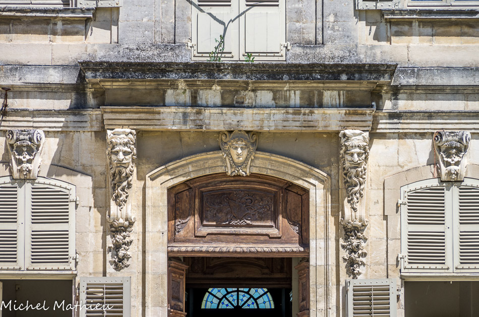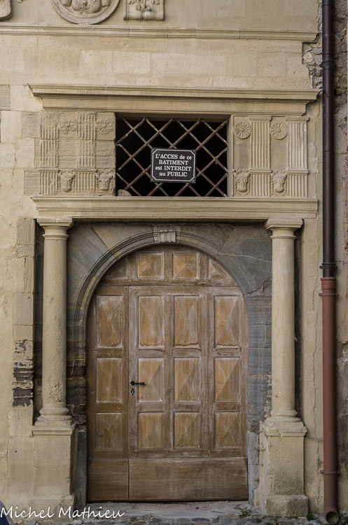 Maison des chevaliers. La porte piétonne, d'ordre dorique, traitée à l'antique.