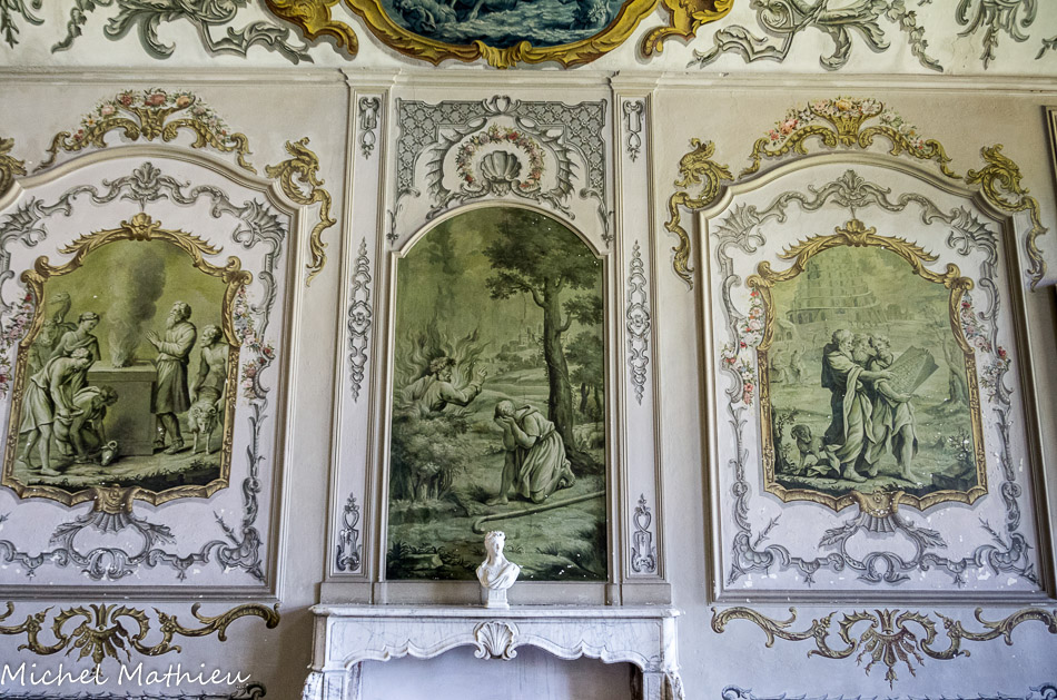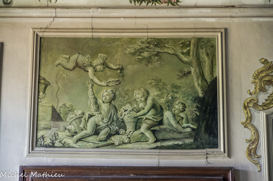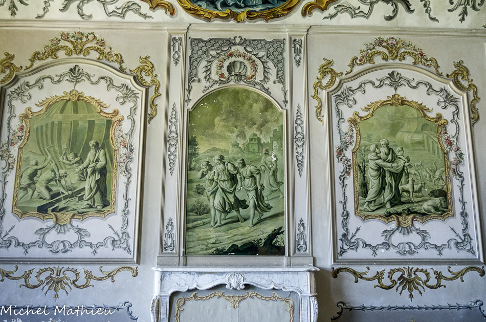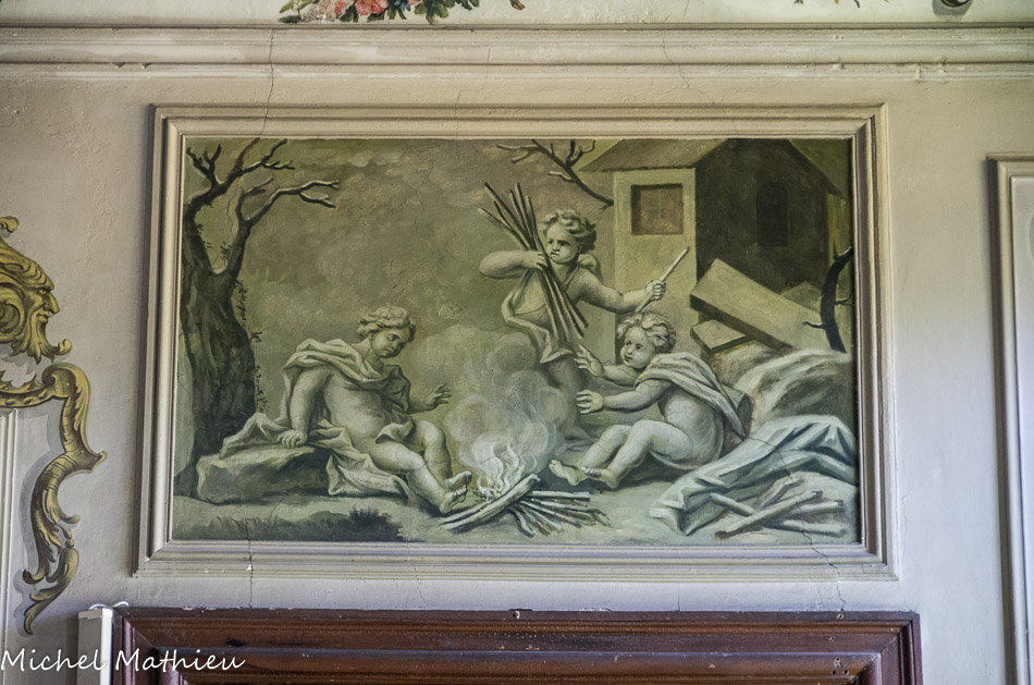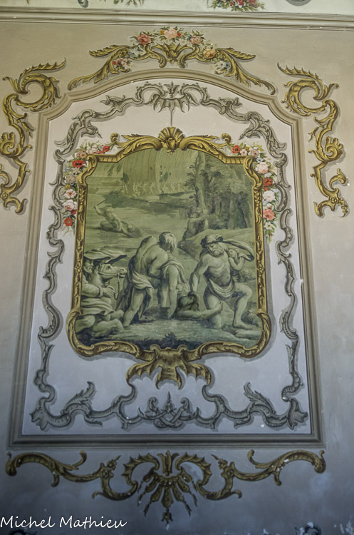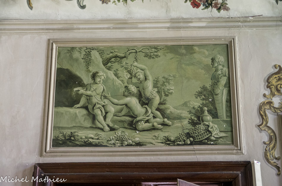 Hôtel de ville. Salon "à l'italienne" décoré de peintures murales en camaïeu de gris-vert.