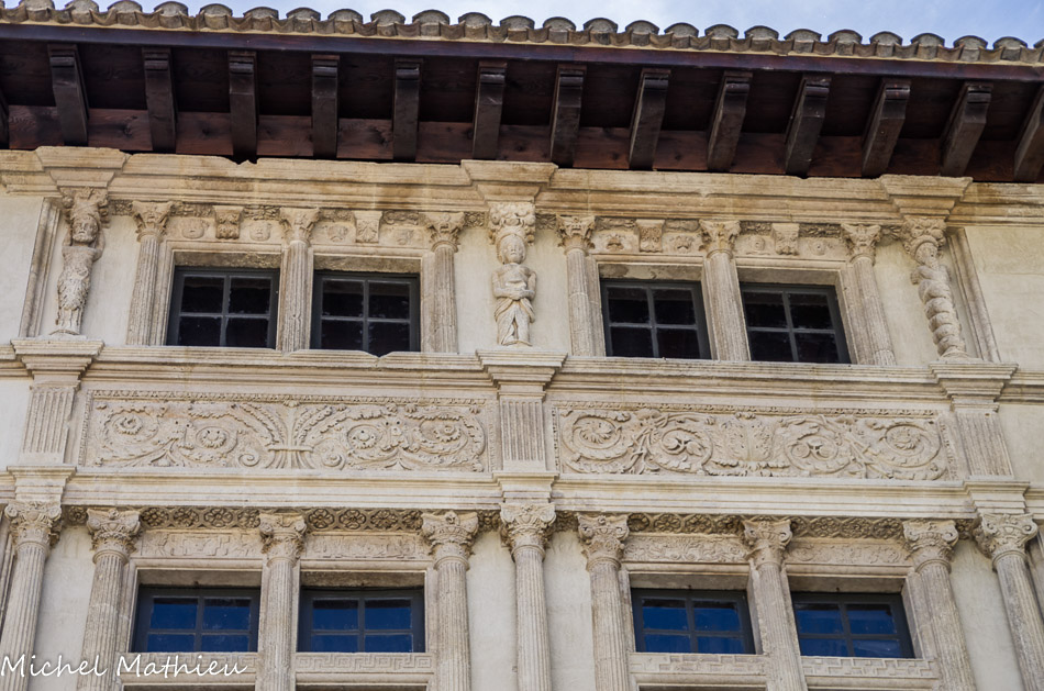 Maison des chevaliers. Cette exceptionnelle façade renaissance est adossée à une maison médiévale comportant plusieurs corps de logis articulés autour de deux cours et s'étendant aussi de l'autre côté de la rue.
