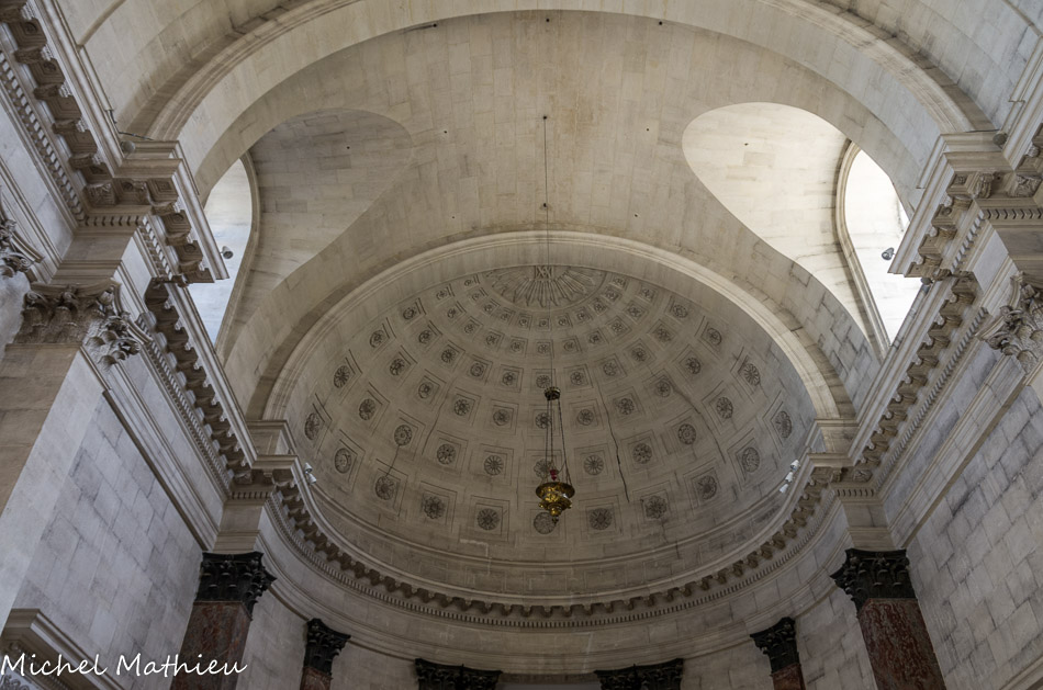 Au XVIIIe siècle, l'architecte Jean-Baptiste Franque spécialiste de la stéréotomie, (art de la taille de la pierre suivant un dessin en trois dimensions) construisit une voûte en pierre, rappelant de fausses coupoles romanes avec des trompes d'angle en éventail. C'est une voûte d'arêtes à double arêtier.