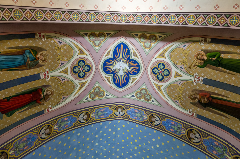 Aiguèze A la voûte du chœur, quatre anges musiciens peints à la manière de Fra Angelico par l'Abbé Bru.