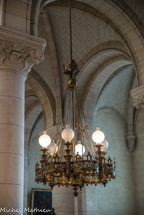 La chapelle de la Vierge comprend quatre belles toiles marouflées illustrant des épisodes de la vie de Marie. Elles sont toutes quatre dues à Jean-Louis Machard (1839-1900), et achevée, après la mort du peintre, par Xavier-Alphonse Monchablon (1835-1907). A gauche, «L'Annonciation» et L'Assomption». A droite, «La Visitation» et «La Crucifixion». On remarquera que la voûte de la chapelle n'a pas d'arcs-doubleaux en fonte apparente.