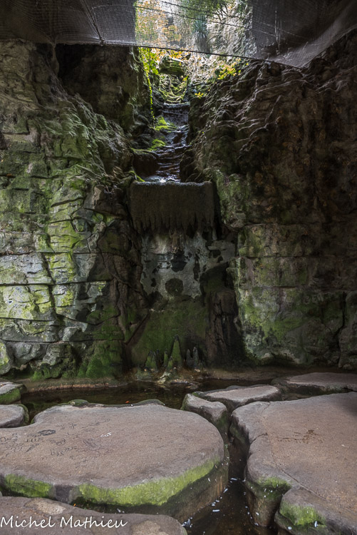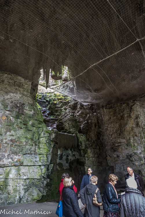 Vue de l'intérieur de la grotte. La grande cascade culmine à 32 m.