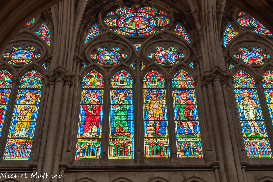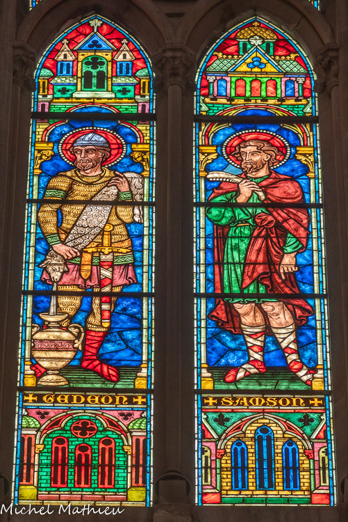 Vitraux de la nef, à droite. Debora, Jahel, Gédéon et Samson.
