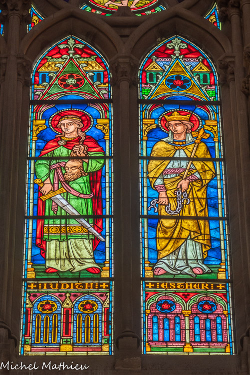 Vitraux de la nef, à droite. Judith et Esther.