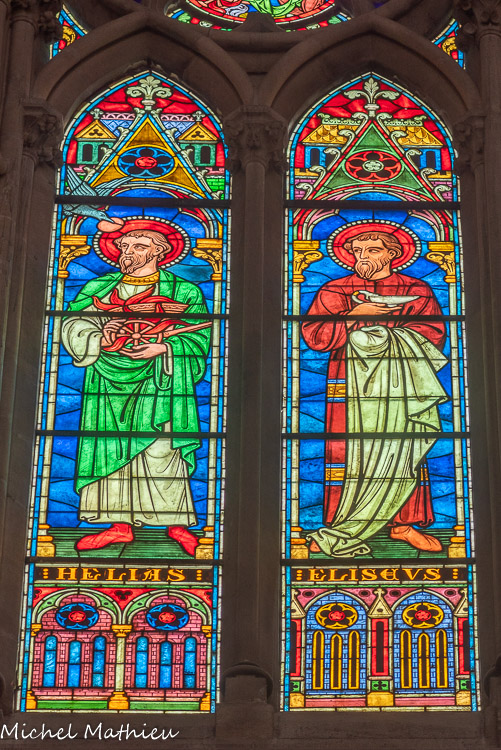 Vitraux de la nef, à droite. Helias, Elisée.