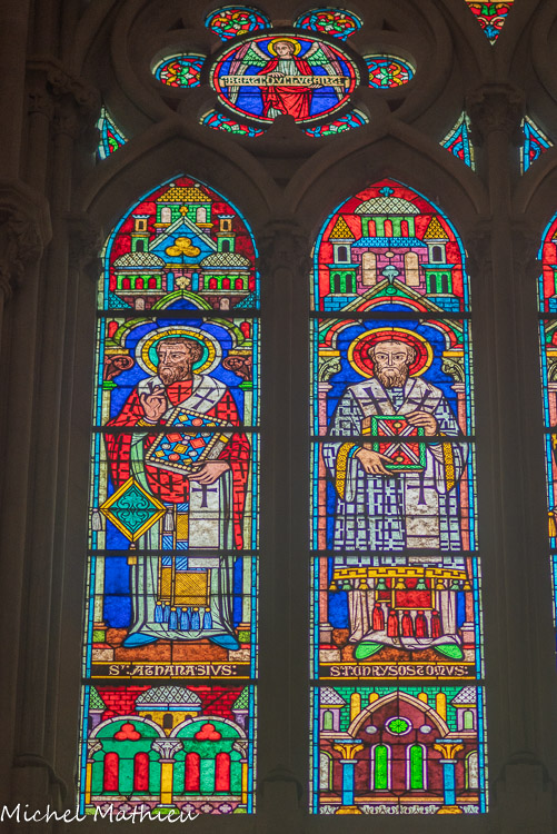 Vitraux du choeur à droite. Saint Athanase, saint Chrysostome.