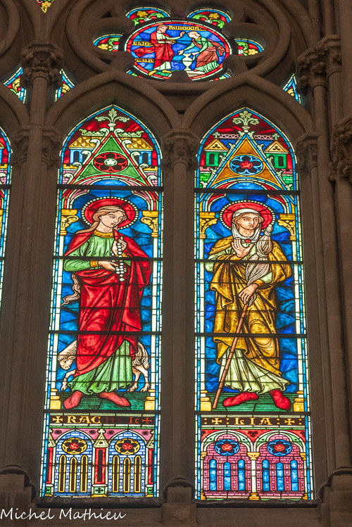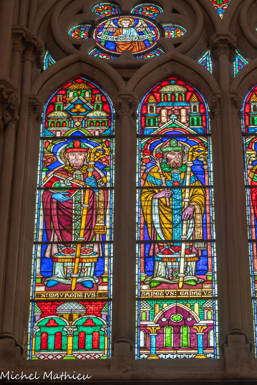 Vitraux du choeur à gauche. Saint Mauront, saint Canat.