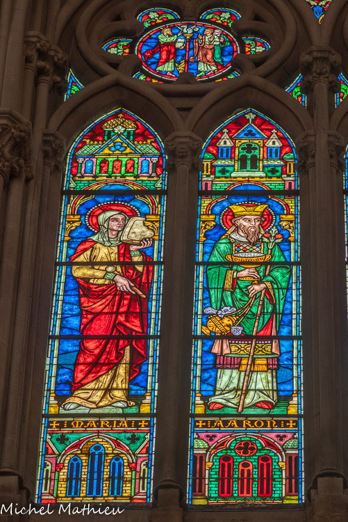 Vitraux de la nef, à gauche. Marie, Aaron.