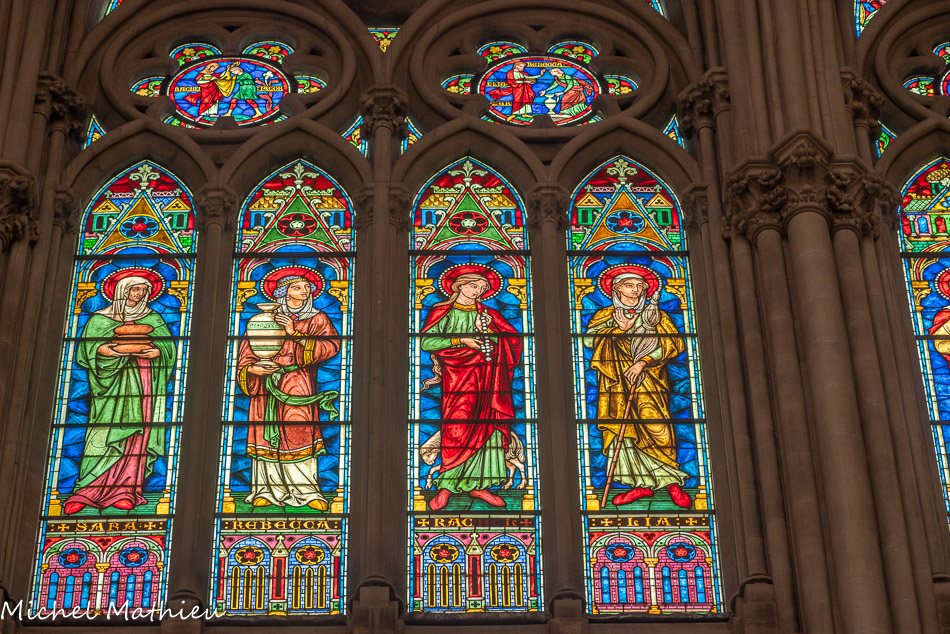 Vitraux de la nef, à gauche. Sarah, Rebecca, Rachel, Lia.