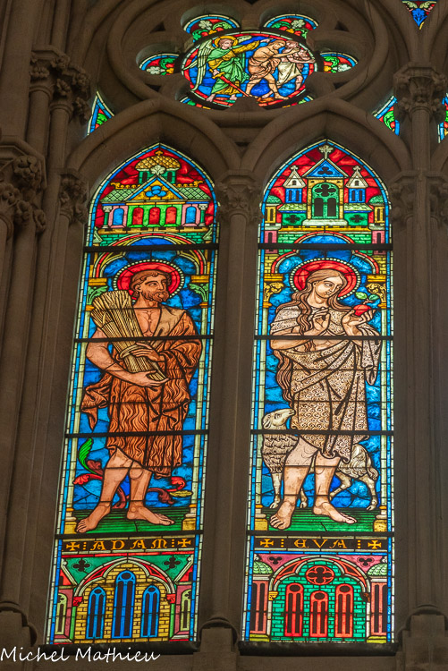Vitraux de la nef, à gauche. Adam, Eve.