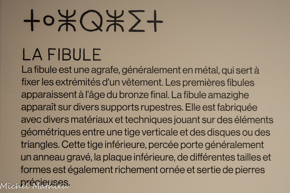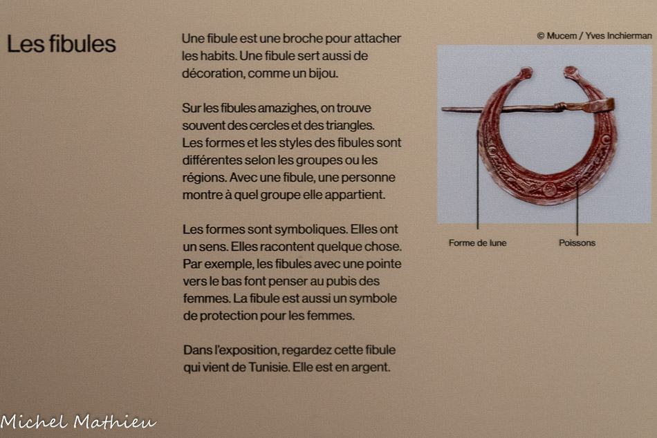 Fibule à motifs : de croissants de lune, de poissons et de grenades.