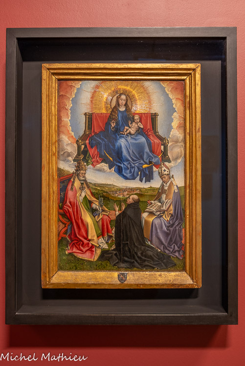 La Vierge en gloire entre saint Pierre et saint Augustin vénérée par un donateur.