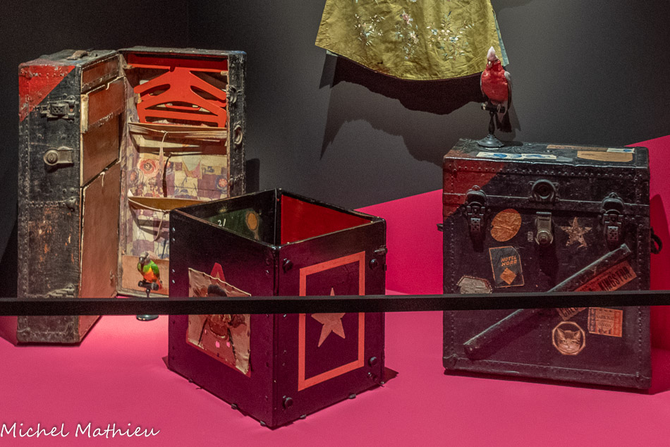 Coffres à mystères. Bois assemblé, peint et vernis, métal, cabochons