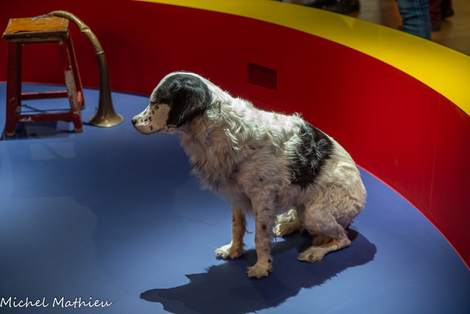 Musée des beaux-arts, Quimper. Chien Noir dans « Vestiaire et défilé » - Fondation Cartier 1995.