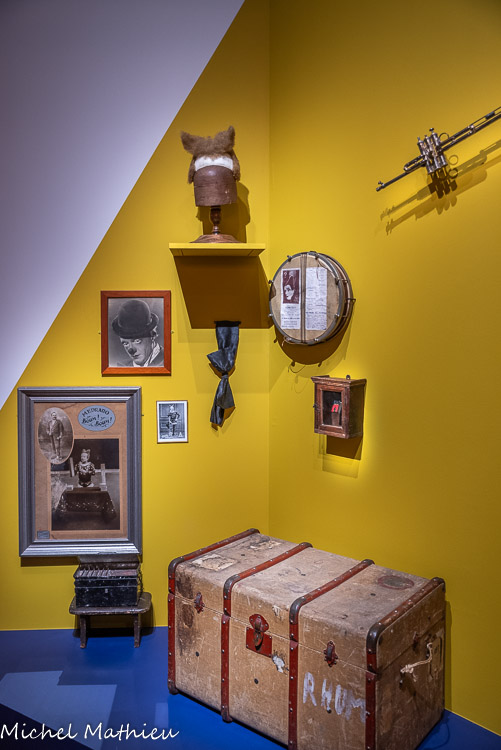 Le clown Boum Boum (Gerónimo Medrano, 1849-1912) est le créateur du célèbre cirque Medrano. Le clown Rhum (Enrico Sprocani, 1904-1953) est réputé pour avoir été l’un des meilleurs augustes de l’histoire du cirque. De la même manière que Boum Boum, il a commencé comme acrobate, jusqu’à ce qu’une chute l’oblige à changer de métier. Grock (Adrien Wettach, 1880-1959) était un clown musical, immensément célèbre. Surnommé le «roi des clowns», il percevait la moitié des recettes du lieu où il se produisait. Malle du clown Rhum