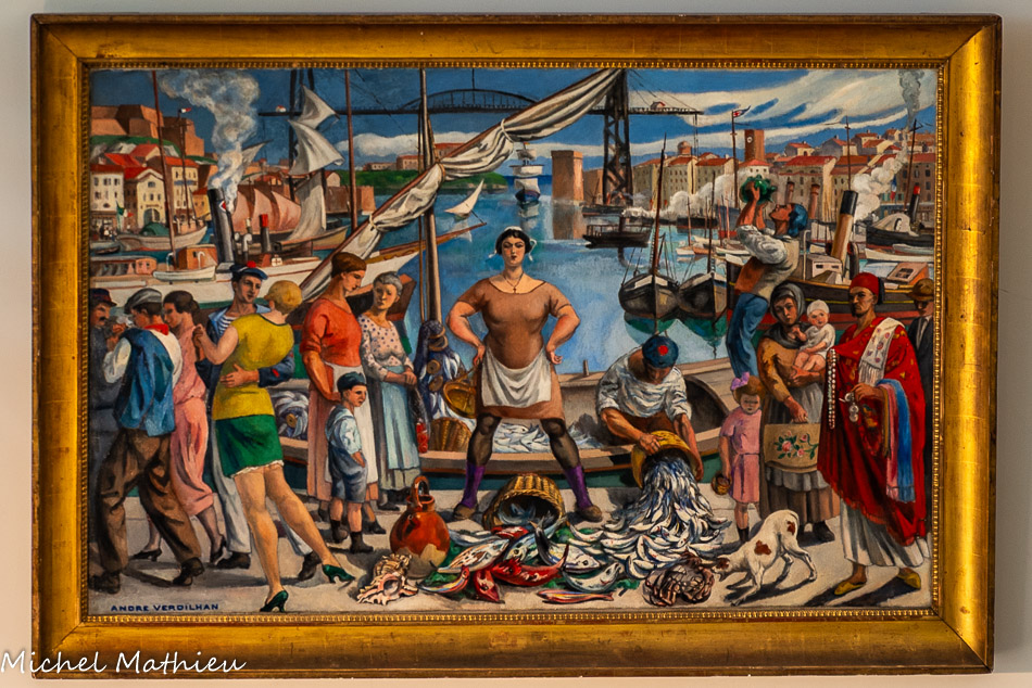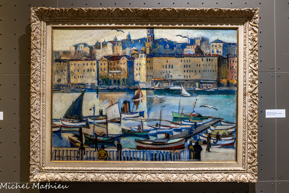 Familier de Marseille où il a régulièrement séjourné, Marquet a notamment posé son chevalet à l'Estaque et autour du Vieux-Port. De ce dernier, il livre ici une vision caractéristique de son style fondé sur une gamme chromatique comme assourdie, ni sombre, ni éclatante, mais aussi sur des formes synthétisées et fortement cernées qui peuvent évoquer la patte de Louis-Mathieu Verdilhan, dont il fait d'ailleurs la connaissance en 1916.