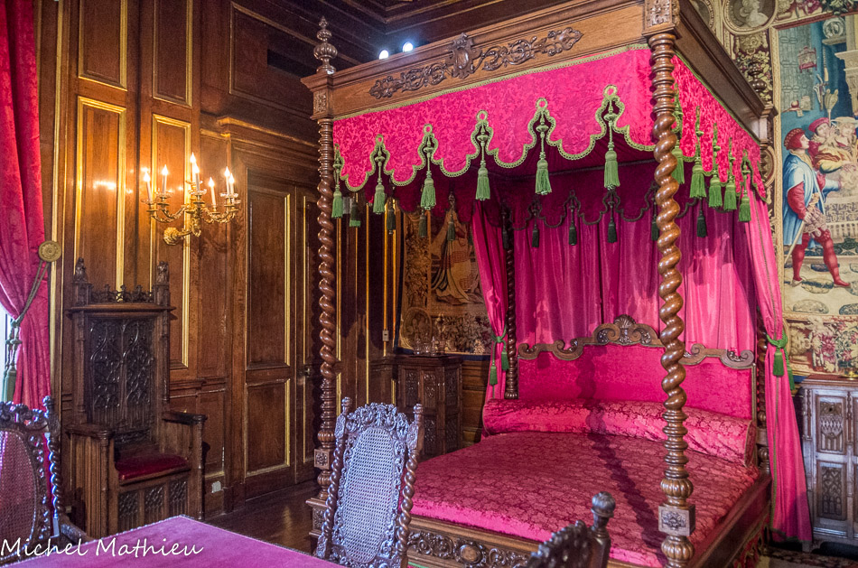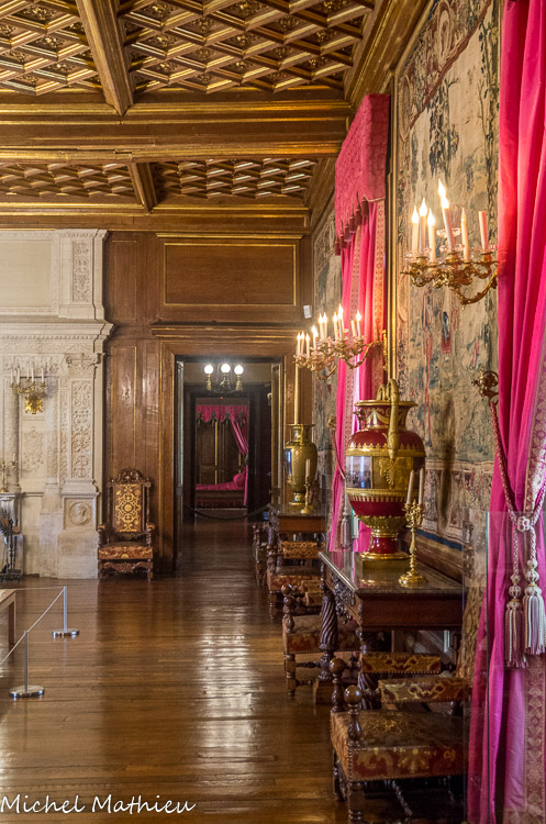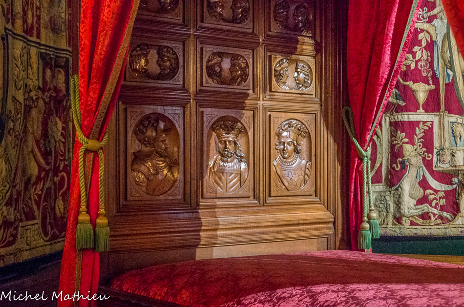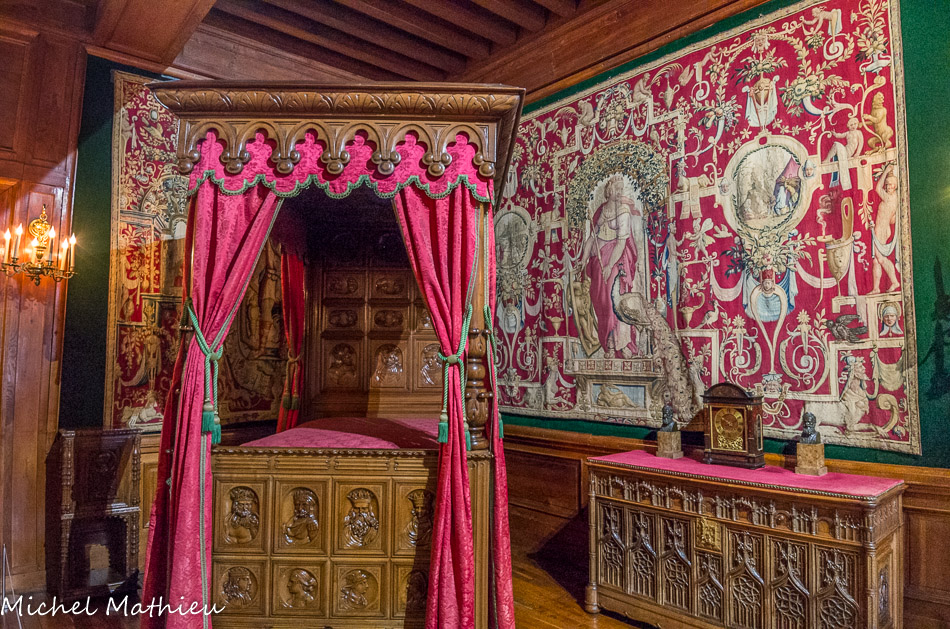 Chambre de Jeanne d'Albret. Louis-Philippe meubla la pièce avec une table du conseil, un lit orné de portraits de rois et une tapisserie aux effigies des dieux rom