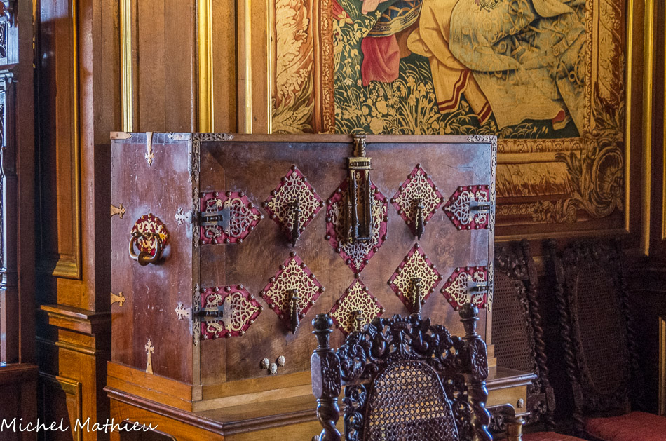 Chambre. Meuble espagnol du XVIIe siècle. C'est un meuble à secret d'où le nom secrétaire.