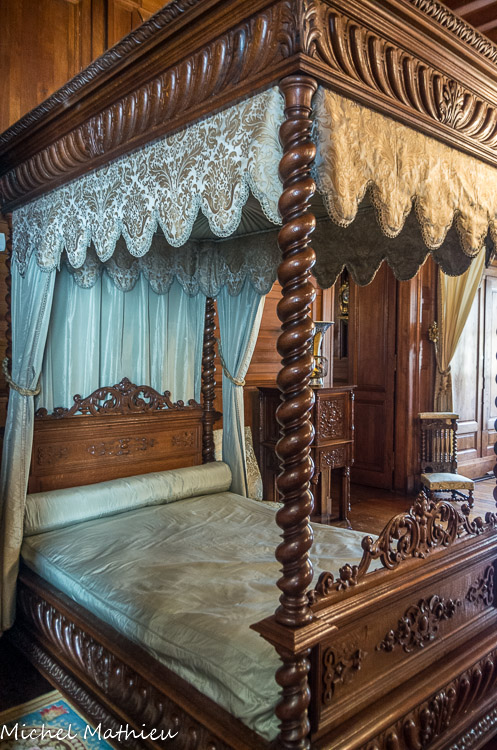 Appartement de la reine ou de l'Impératrice. La chambre. Construits à l'origine pour l'épouse de Louis-Philippe, la reine Marie-Amélie, ces appartements furent finalement occupés par l'impératrice Eugénie. Ces appartements comprennent un boudoir, une chambre, une salle de bains, un cabinet de garde-robe ainsi qu'une chambre de domestique et une salle des atours. L'impératrice vint à de nombreuses reprises dans le château de Pau au cours de ses voyages entre Biarritz et les stations thermales des Pyrénées.