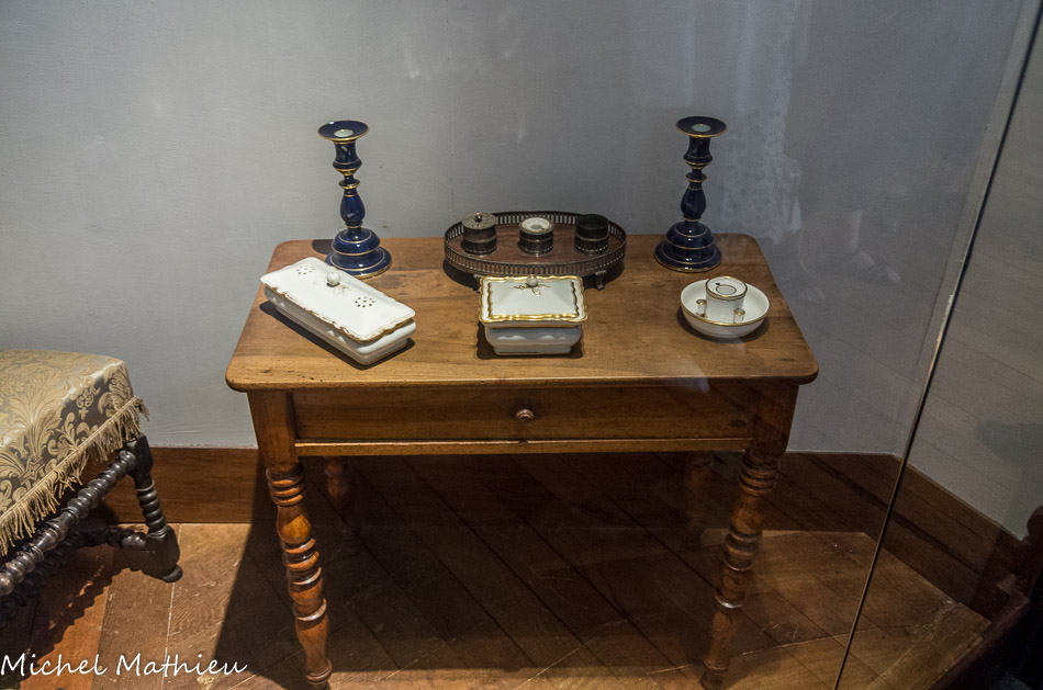 Appartement de la reine ou de l'Impératrice. Dans le boudoir, la toilette à rideaux froncés de tulle et volants de mousseline brodée date de 1853. Un ensemble du même type fut mis à la disposition de la reine Victoria pour son séjour à Saint-Cloud (1855). La garniture (pot à eau, boîtes à éponge, à pommade, à pâte etc.) est de porcelaine de Sèvres. Le miroir de Venise à encadrement de glaces biseautées et découpées sur fond d’azur qui la complète date du XVIIIe siècle.