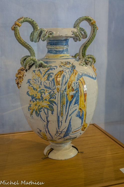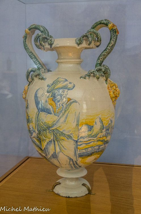 Faënza, XVIIe siècle. Majolique. Faïence stanifère. Jonas et Amos.