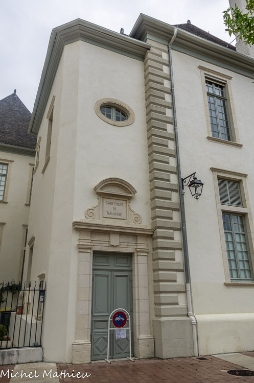 À proximité du château, le Parlement de Navarre, ainsi dénommé, voit ses origines dans le rattachement du Béarn à la couronne de France sous Louis XIII en 1620. Mais, il s'établit, en fait, dans un plus ancien palais de justice qui avait été construit dès 1585 notamment en lieu et place de la maison de l'évêque de Lescar. Incendié en 1716, il est rebâti mais très vite abandonné au profit du palais de justice actuel.