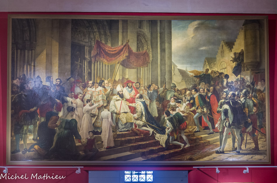 Le grand salon. Le salon d'attente et le grand salon de réception ne formaient autrefois qu'une vaste salle où se réunissaient au Moyen Âge la « cour majour » de Béarn et qui devint, au XVe siècle, la salle du trône du roi de Navarre. Henri IV il fut baptisé le 6 mars 1554.