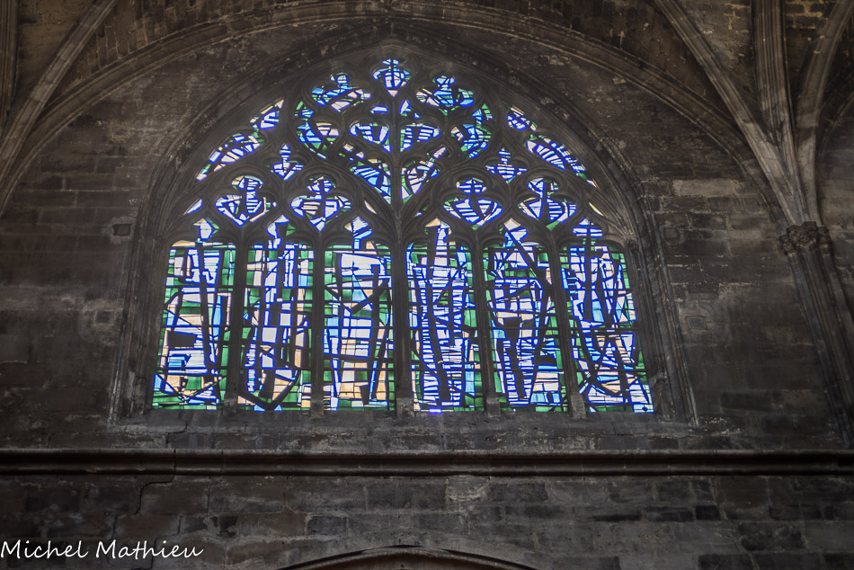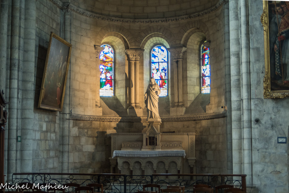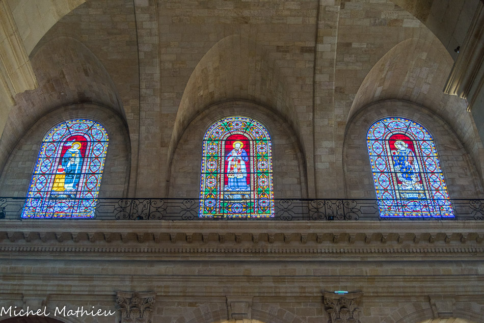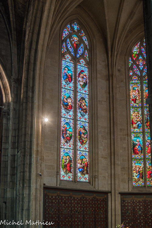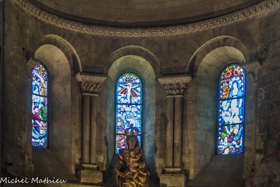 Les vitraux du choeur, consacrés à la Vierge consolatrice (vitrail central) et à l’histoire de saint Pierre (vitraux latéraux), sont l’oeuvre