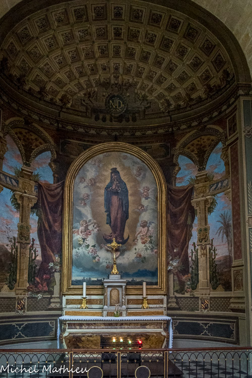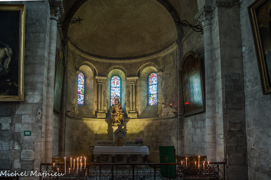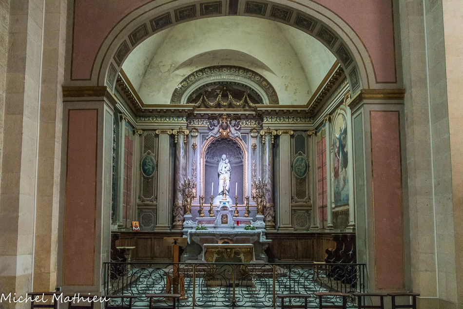 Dans la chapelle Notre-Dame du Rosaire, également chapelle du Saint Sacrement, le retable met en valeur une statue de la Vierge à l'Enfant.