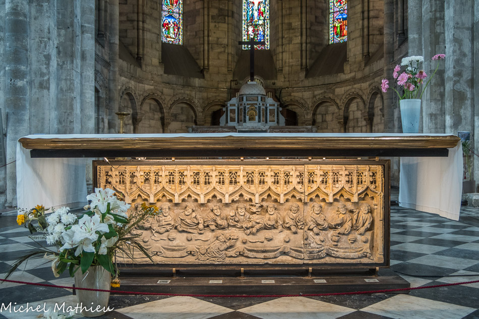 Les médaillons portent des épis de blé et des grappes de raisin préfiguration de la naissance de l’Eucharistie.