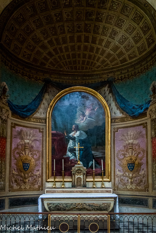 Les murs de la chapelle portent la devise « Domine saIvam fac galliani » ( Seigneur sauve la France). Sur les colonnes, sont apposées les armoiries de la royauté faites de fleurs de lys sur champ d'azur.