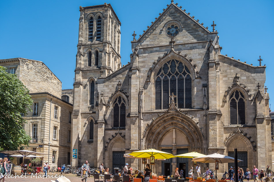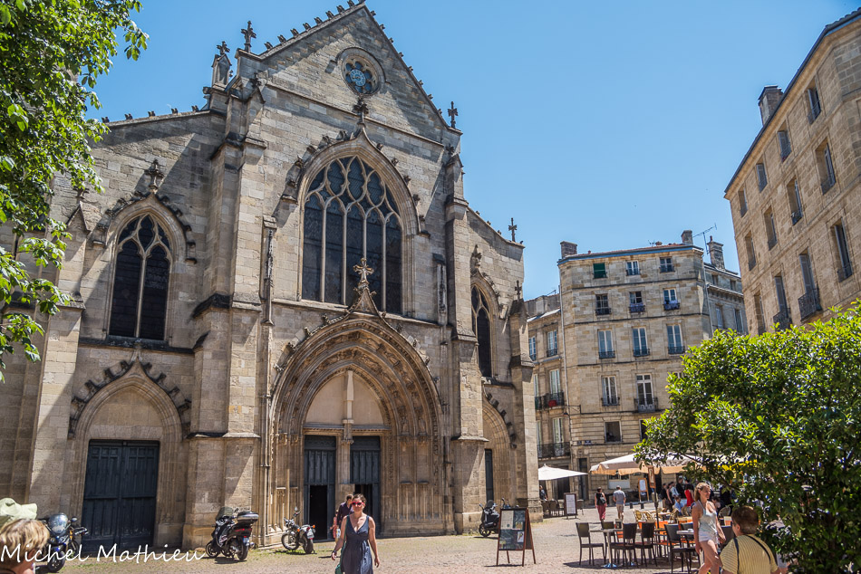 L'existence d'un sanctuaire dédié à saint Pierre est avérée au VIe siècle. La paroisse Saint-Pierre, l'une des plus anciennes de Bordeaux, est créée au XIIe siècle. Une première église, aujourd'hui disparue, est construite au Moyen Âge. L'actuelle église est édifiée aux XIVe, XVe et XIXe siècles. Ce n’est pas un hasard si l’église Saint Pierre se trouve au cœur du Vieux Bordeaux, sur l’emplacement même du port Gallo-Romain. Bordeaux, port avant d’être cité, devait honorer le patron de ceux qui vivaient du fleuve et constituaient l’essentiel de sa population. Fin XIXe, une reconstruction couplée d’une restauration partielle est