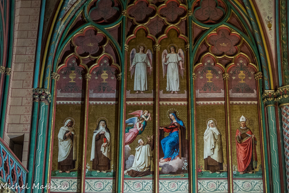 Les décors muraux de la chapelle ont été peints en 1861-1862 par Alexandre Dominique Denuelle.