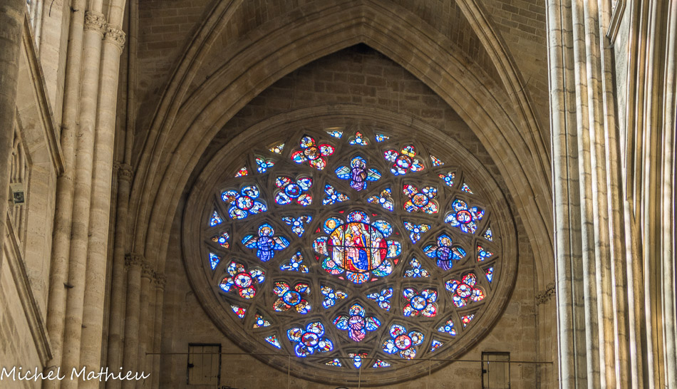 Rosace du XVIe. La rose nord (dont les menaux ont été refaits entièrement en 1847 sous la direction de M. Mialhe, architecte), était représentée la passion du fils de Dieu, don de Mgr Antoine-Prévot de Sansac, archevêque de Bordeaux, de 1560 à 1591. Cette rose possède encore plusieurs anges tenant les instruments de la passion et au-dessous la figure de saint André.