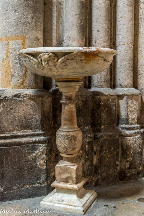 Un bénitier du XVIIe siècle» aux armes du cardinal François de Sourdis.