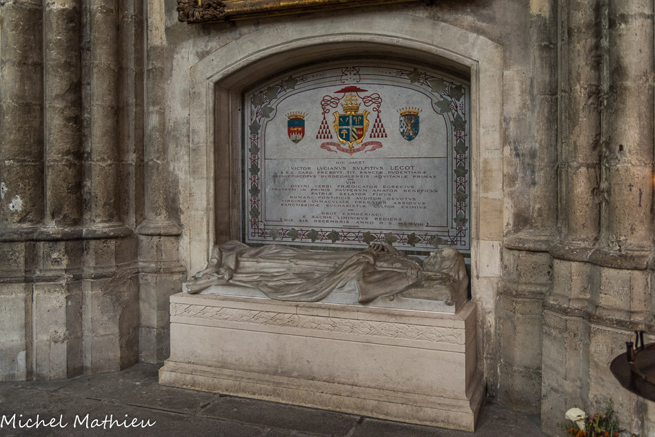 Au fond, le tombeau de Mgr de la Bouillerie coadjuteur de l'archevêque de Bordeaux de 1872 à 1882 et archevêque de Perga.