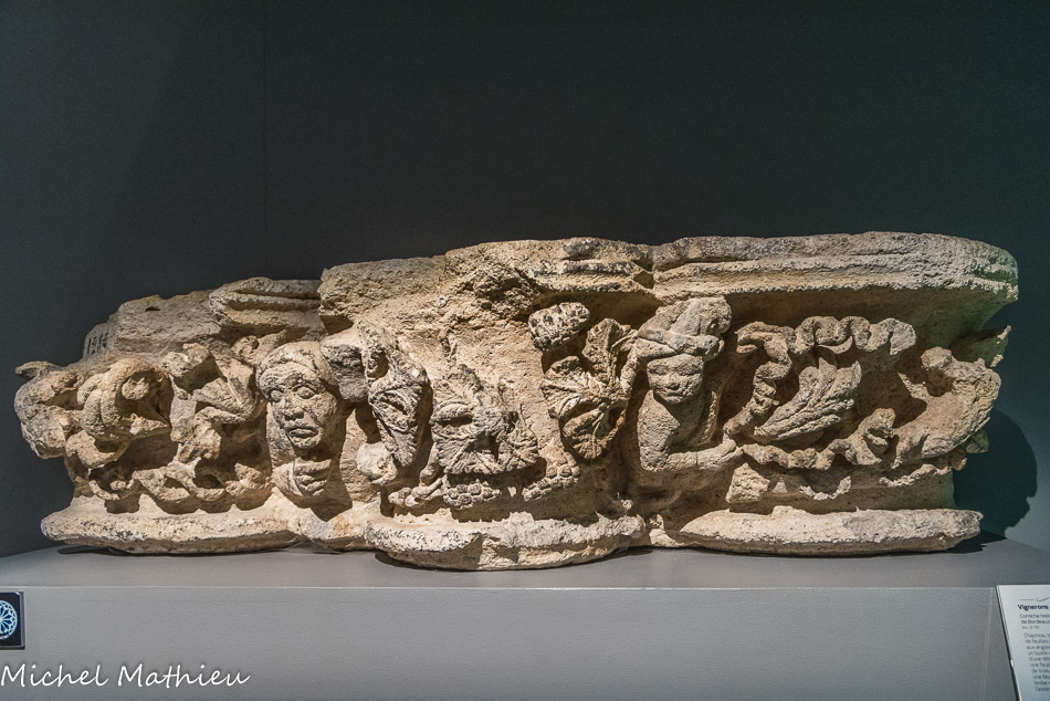 Église de la Brède (Gironde). XIIe siècle. Calcaire. Homme et griffons, lion et fleurons, animaux et végétaux.