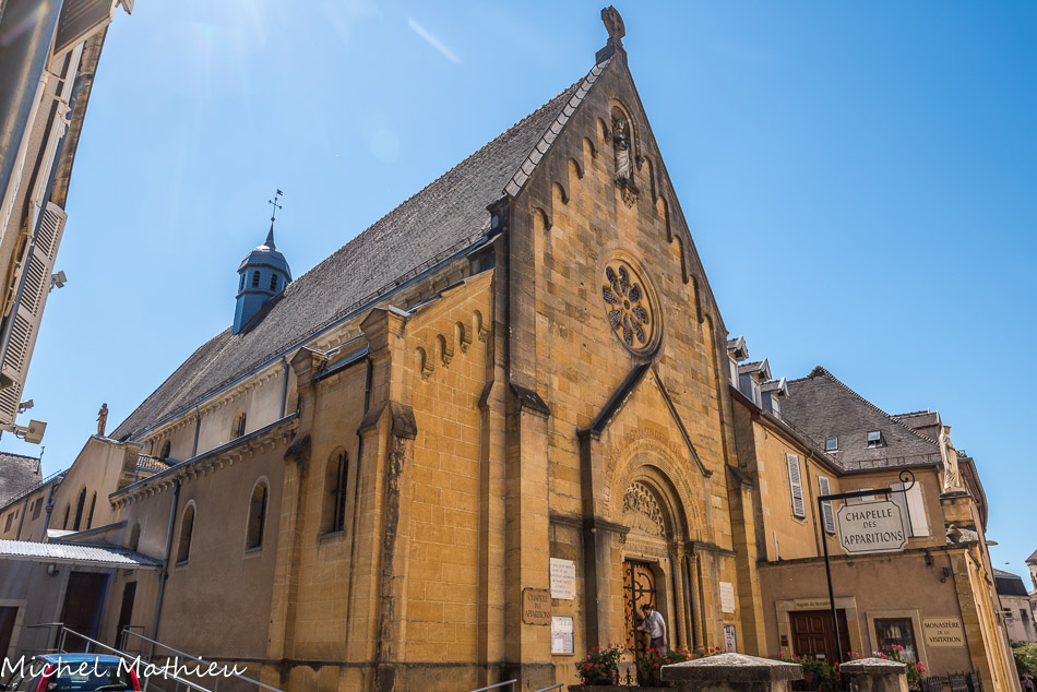 Au cœur du sanctuaire, la chapelle des Apparitions (XVIIe-XIXe siècles) Restaurée au XIXe siècle, puis en 1965-1966, et en 2003-2004, la chapelle a été rebâtie à partir des structures anciennes. La façade utilise un vocabulaire iconographique emprunté à l'époque médiévale, tel les billettes, que l'on peut observer dans la basilique.