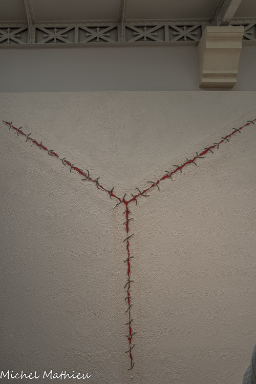 Cette œuvre, conçue en 1979 pour la chapelle de Niort, fait partie d'un ensemble carmélite harmonieux avec un autel et une Porte de tabernacle. Le signe Y - initiale de YHVH et YESHOUA - a été sculpté comme une plaie rouge sang, refermée par des cordelettes évoquant des points de suture, à l'image d'une blessure en cours de cicatrisation. L'œuvre fut perçue par les moniales comme une "œuvre de réconciliation", ouvrant un espace de dialogue entre judaïsme et christianisme.
