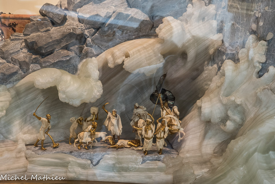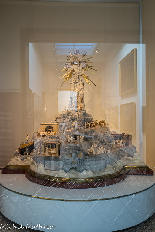 Via Vitae. Joseph Chaumet, orfèvre parisien, (1852-1928), 1904. Marbre, albâtre, onyx, or, ivoire, argent doré, grenat, diamants et rubis, cristal de roche, laiton. Sur les pentes d'une montagne de marbre, entourée de flots d'albâtre, dix groupes de figures chryséléphantines (en or et en ivoire) retracent la vie du Christ. Au sommet, deux statues allégoriques de l'Harmonie et de l'Amour brandissent l'hostie sous une gloire rayonnante symbolisant la Trinité. Le monument est le fruit du travail de Delaspre et Lindenher, chefs des ateliers de joaillerie et de sculpture. L’équipe chargée de sa réalisation s’inspire de différents courants artistiques et semble même en dessiner la synthèse.