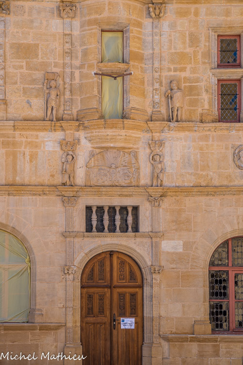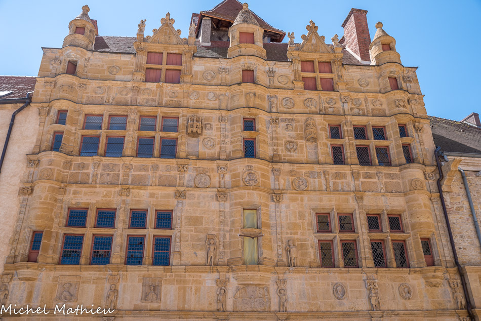 Maisons « Jayet ». Au-delà de l'influence italienne, la particularité de cette façade réside aussi dans les résurgences du gothique bourguignon comme les poupons qui tiennent les armoiries familiales.