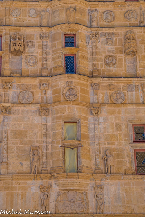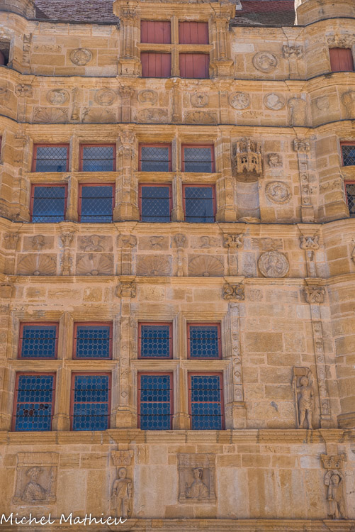 Maisons « Jayet ». De nombreux médaillons sculptés représentent des personnages difficiles à identifier soient en habit du XVIe siècle, soient des reproductions de personnages antiques.